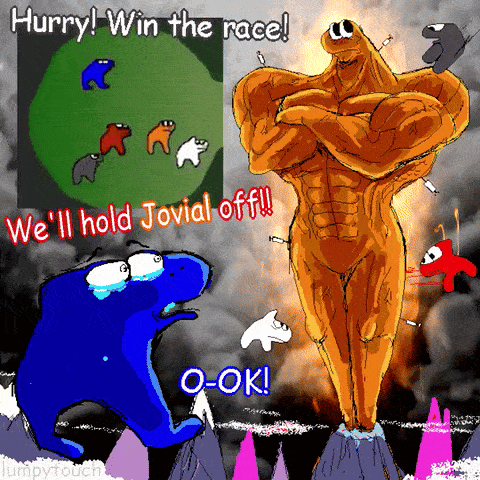 Also, in a lot of media, there's the "official art" and the "fan stuff." I feel like with Horse Race Tests, the fan stuff is in many ways more official. There's no embedded narrative in my game, so the narrative they come up with is more valid than anything I could say. These people say that Cyan is trans, then that's valid. But people have actually been saying Jovial Merrymment is a white nationalist or something [laughs].