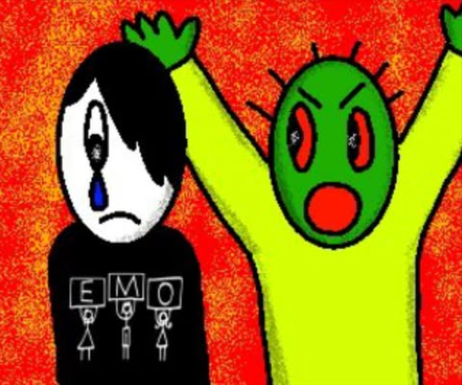 Yeah, it’s kind of like a kid says, “Oh, I hate emos so much. I’m going to log onto my computer, and I’m going to make a stick figure animation on Microsoft Movie Maker about how much I hate them!”